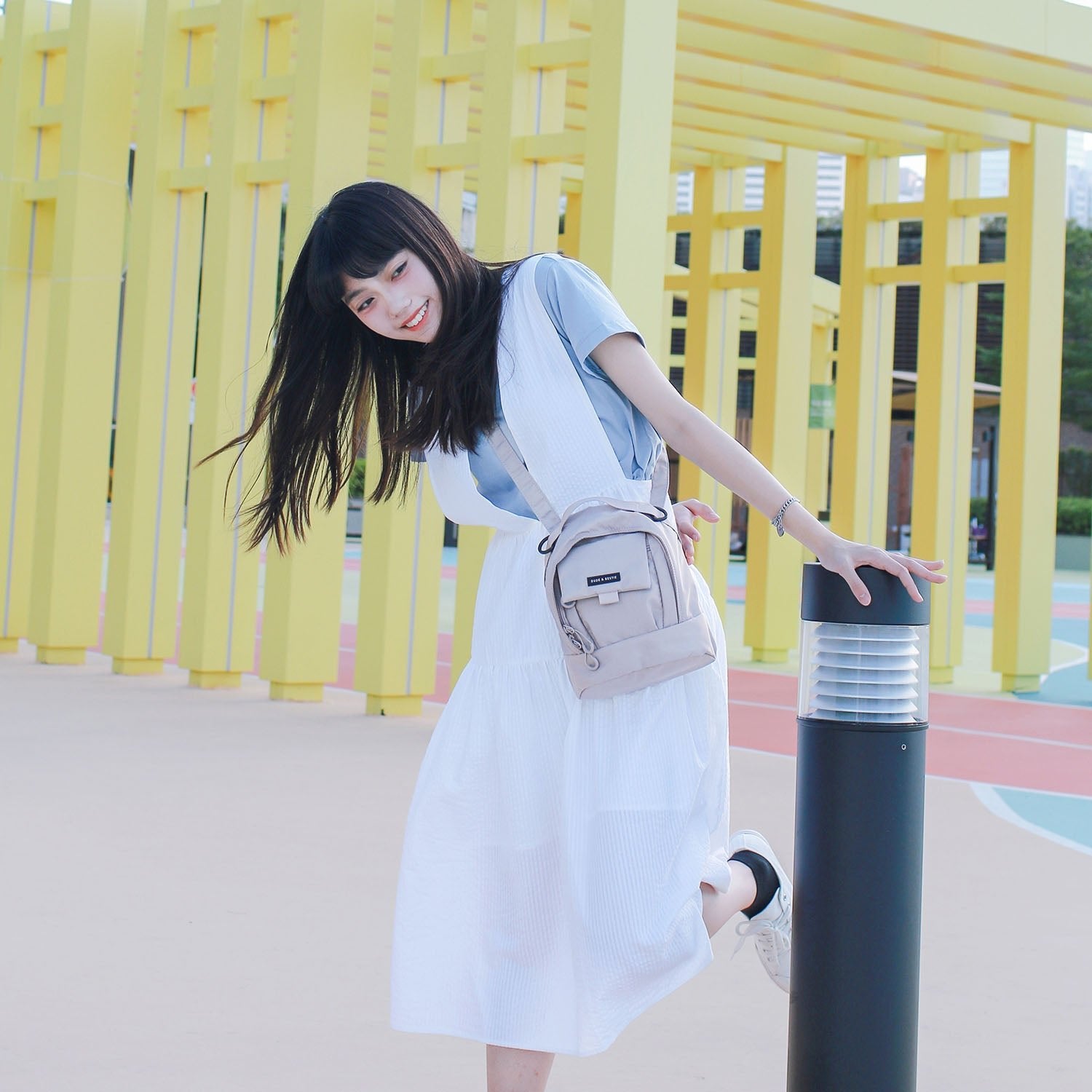 The Mini Gemini Bag is a two-way functional backpack and crossbody bag featured with water-repellent nylon material that will protect your phone and other belongings from rain, as well as light-weight that you can carry for a whole-day trip.